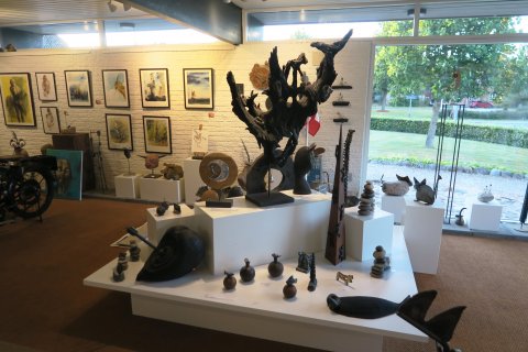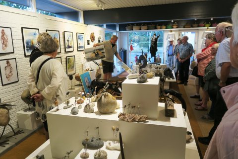 Indehaveren Carsten Snor fortalte om sin forretning og alle de kunstværker han lavede på sit værksted.