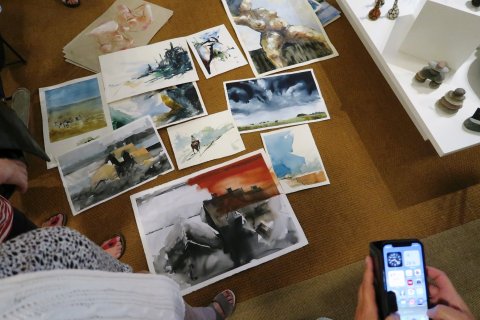 Derefter kørte vi til Dansk Natur Design, Foldingbro, hvor tegneren Bjarne Orth Hansen fortalte os om sine akvareller, som han udstillede.