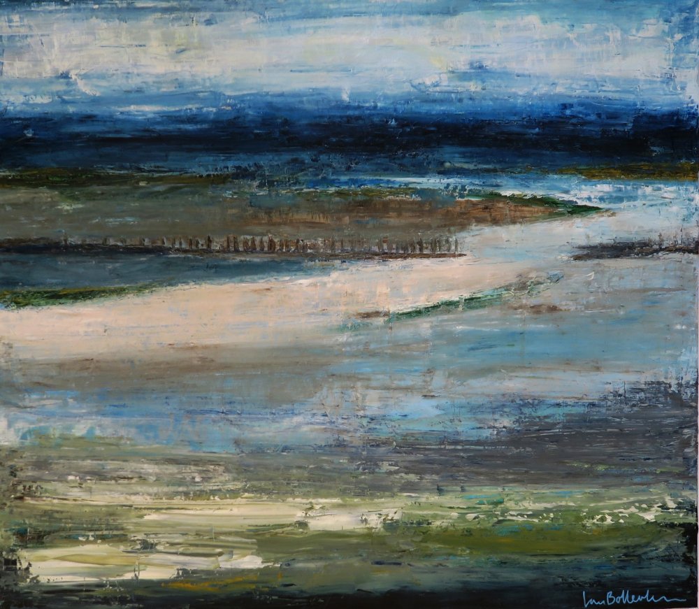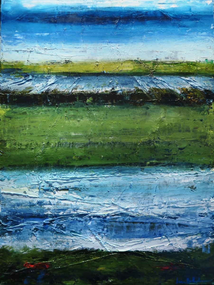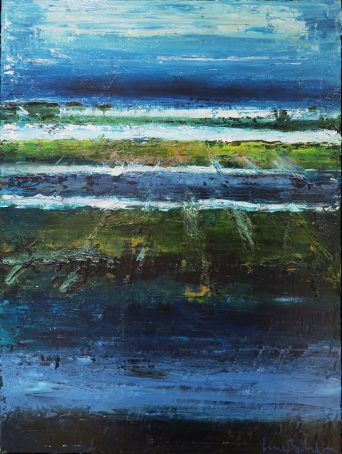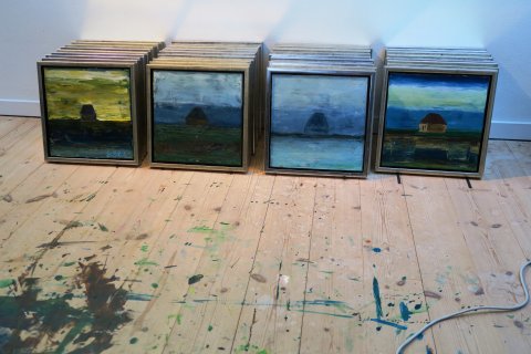 Lars Bollerslevs malerier fremstår lige så fysisk nærværende og knudrede, som den jord de skildre. Markmandshuset og de tunge våde marker, og engen der omgiver det, vises sammen med den store altomfattende horisont i solskin, regn, slud og blæst og under indtryk og påvirkning af alle fire årstider i malerier, som trænger sig ind under huden på beskueren.