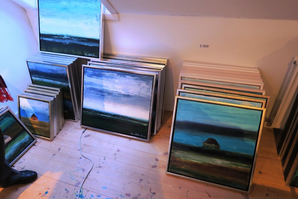 Vi beså lageret af billeder og ophænget rundt i huset. Billederne gjorde indtryk og der blev handlet en del.