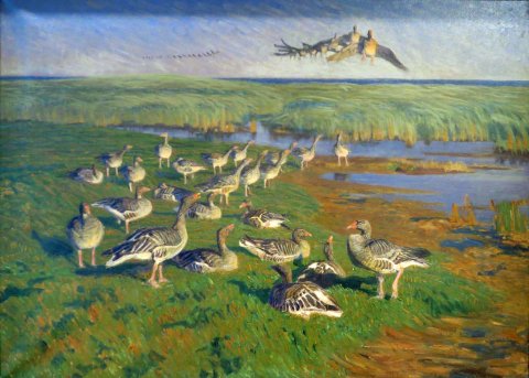 Kl 15 kørte vi til J. Larsens Kunstmuseum hvor vi så deres fine udstilling af fuglemotiver.