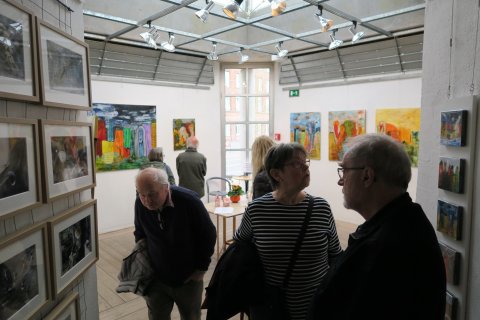 I Kunstbygningen Filosoffen, Filosofgangen 30, Odense C, så vi på en maleriudstilling af forskellige kunstnere, fordelt i flere rum i 3 etager. Efter frokost fik vi gennemgået en udstilling der var basseret på HC Andersens Eventyr.