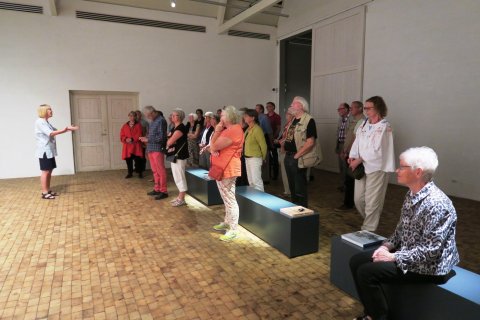 Vi ankom med bus kl 17 og en veloplagt guide viste os rundt i hele udstillingen. Vi fik forklaret Jorns udvikling og de teknikker han måtte tilegne sig gennem tid.