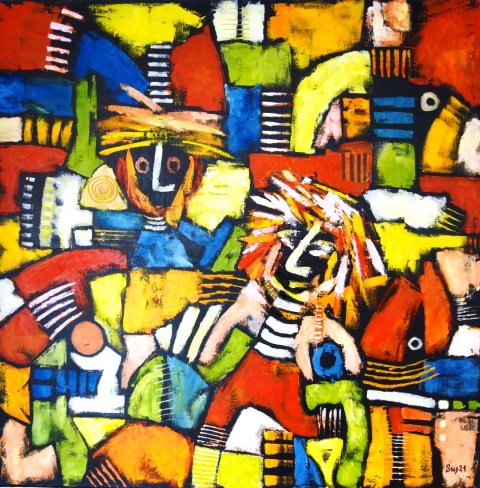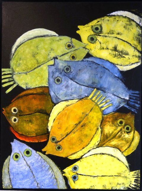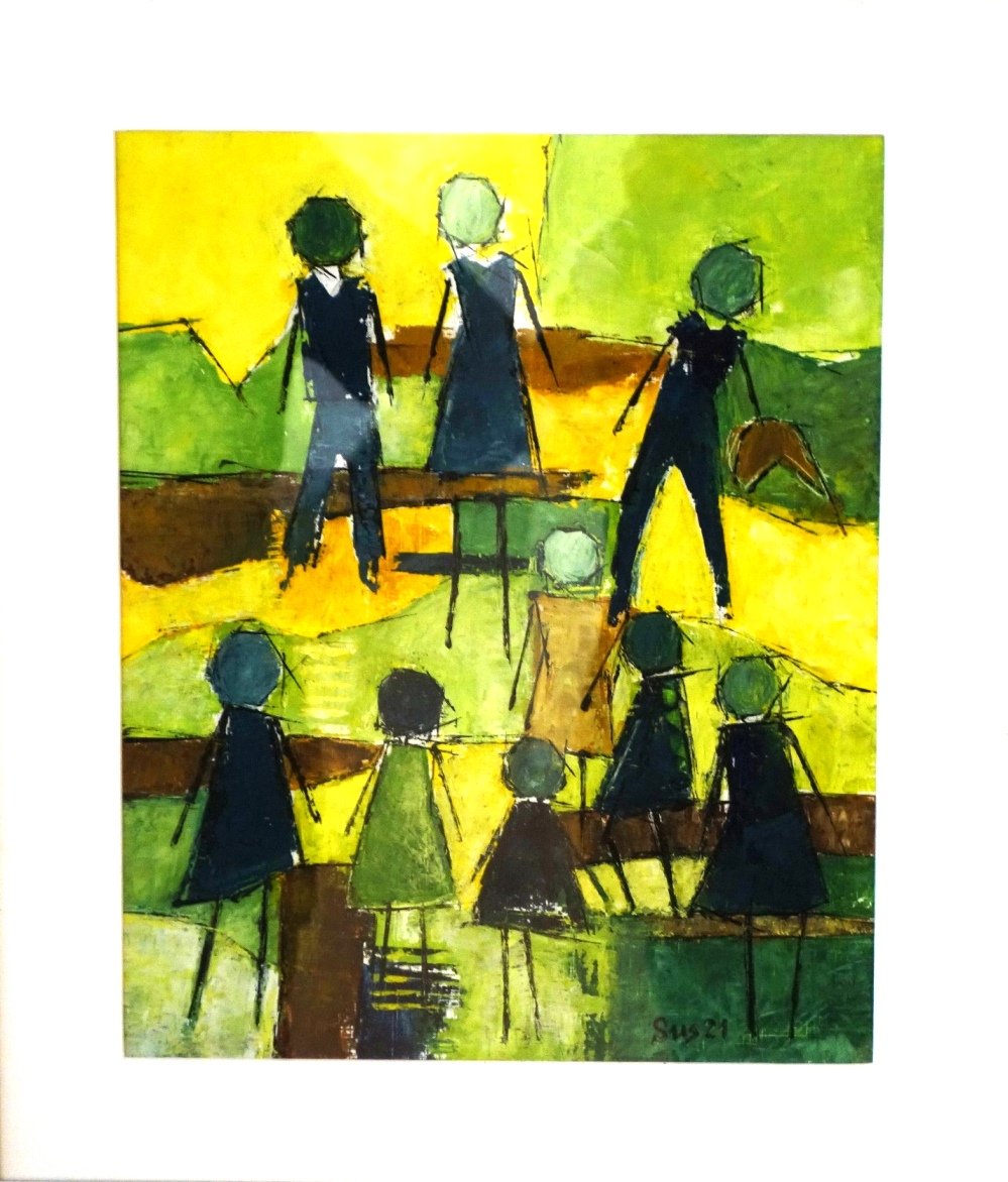 Billedkunstner Susan Bleeg Christiansen, Aabenraa. Hun har tidligere boet i Lintrup og været lærer på Rødding Skole. Susan startede med at male i 2002 – efter at have drømt om det i flere år. Billederne er som udgangspunkt abstrakte, og det er legen med form og farver, der er det primære.