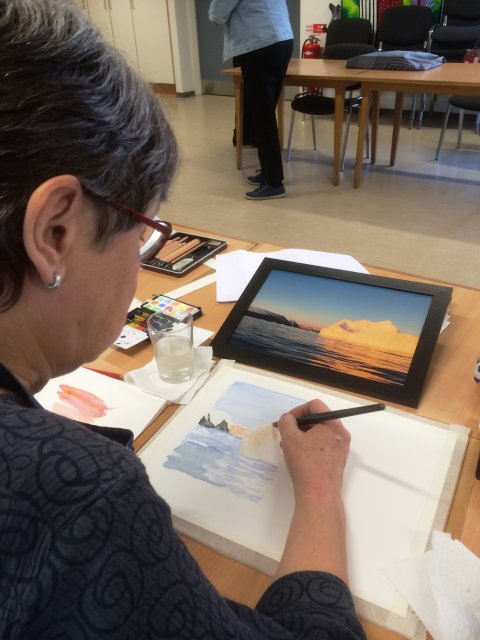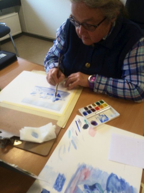 Troels` billeder er efterfølgende blevet udstillet, og kursisterne blev indbudt til at hænge deres tegninger/ akvareller op ved siden af - (dette var dog frivilligt)
