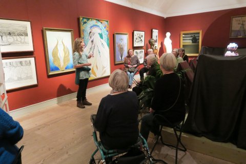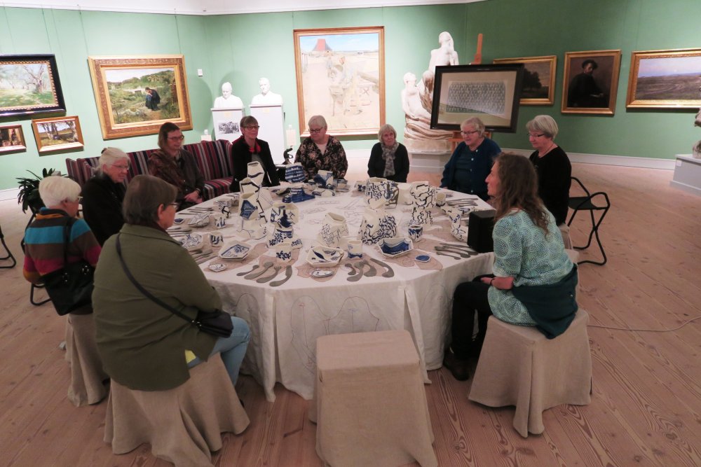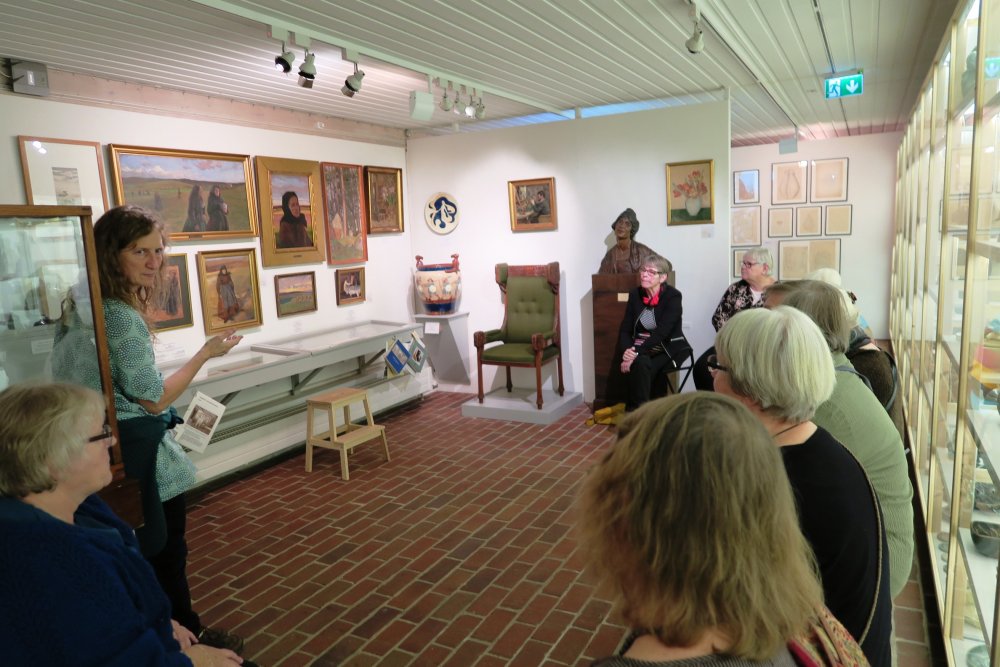 Torsdag den 12. november mødtes vi på Vejen Kunstmuseum. Museumsleder Teresa Nielsen fortalte os om de kvindelige kunstnere i museets samling med afsæt i fortællingen om billedhuggerens første hustru, der som ham var uddannet billedkunstner. Hendes eksempel er karakteristisk for tiden omkring 1900, hvis kvindelige kunstnere sjældent blev skrevet ind i den danske kunsthistorie, men gradvist bliver det nu 100 og 150 år senere.